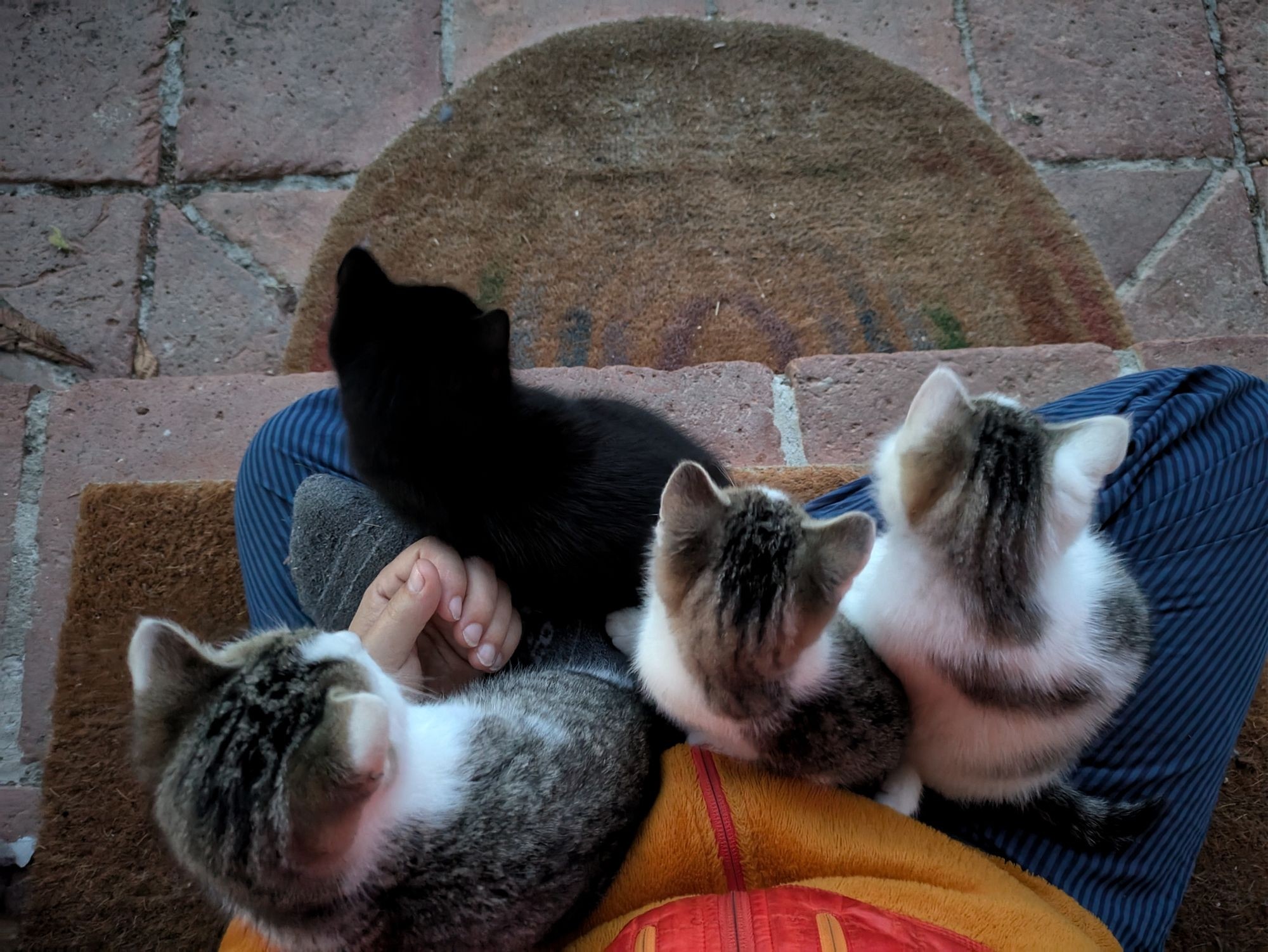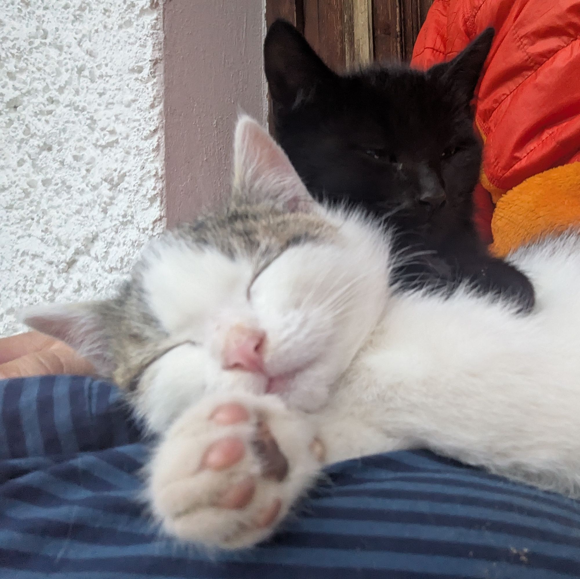 Heute habe ich das erste Mal gesehen, wie unsere erwachsene weißgetigerte Katze die Kleinen abgeschleckt und geputzt hat und nicht angeknurrt. 😍