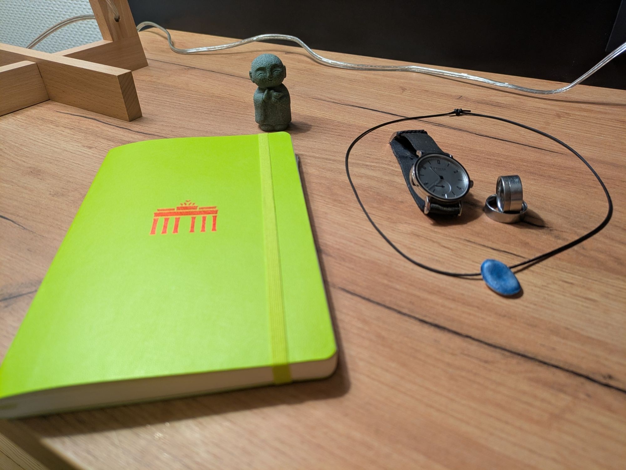 Ein weiches leuchtend grünes #Moleskine Notizbuch, mit Brandenburger Tor für mich vor Ort im Laden drauf gemacht.