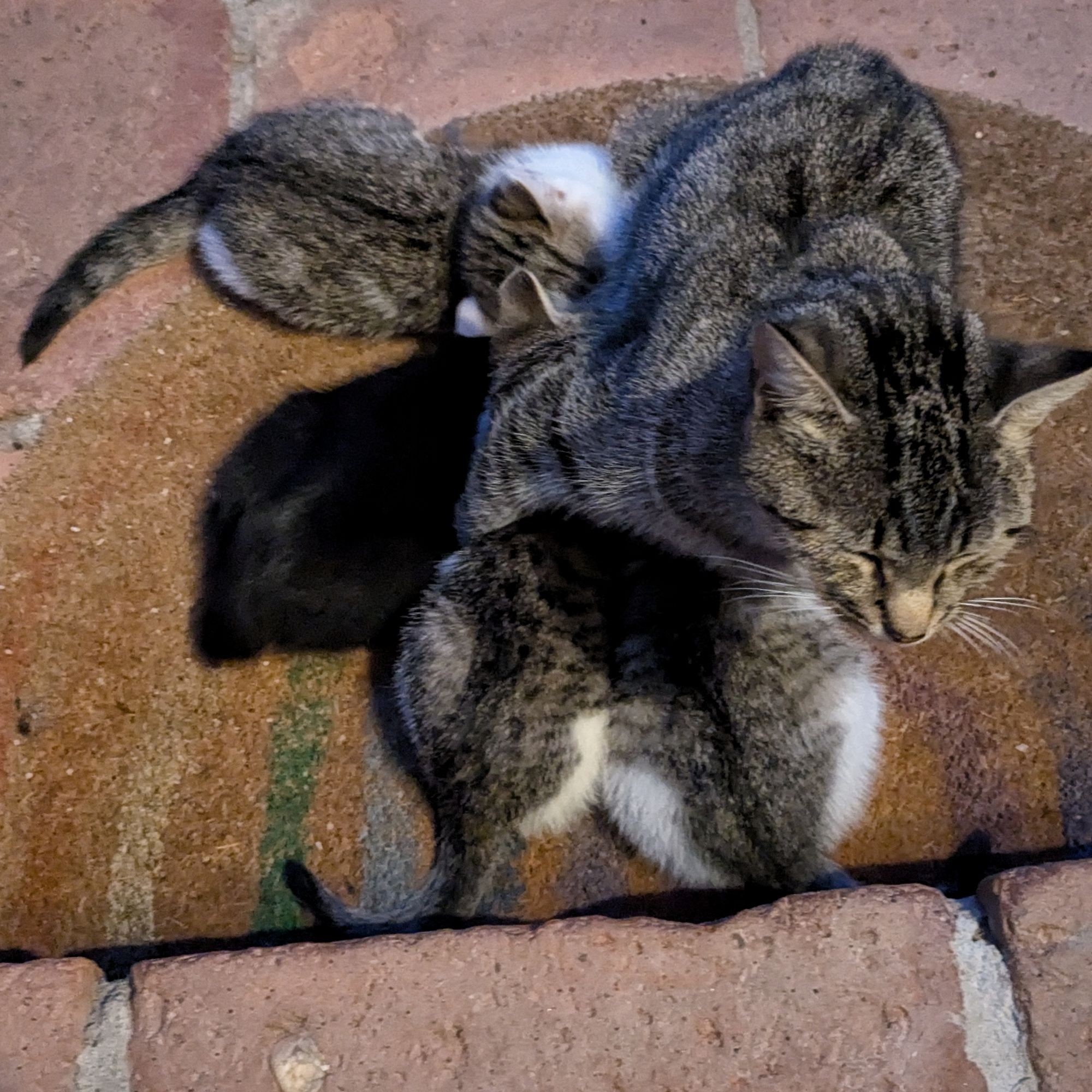 Die 3 kleinen 🐈 waren vom gemeinsamen Toben noch ganz aufgedreht und haben miteinander und Midi gerauft.