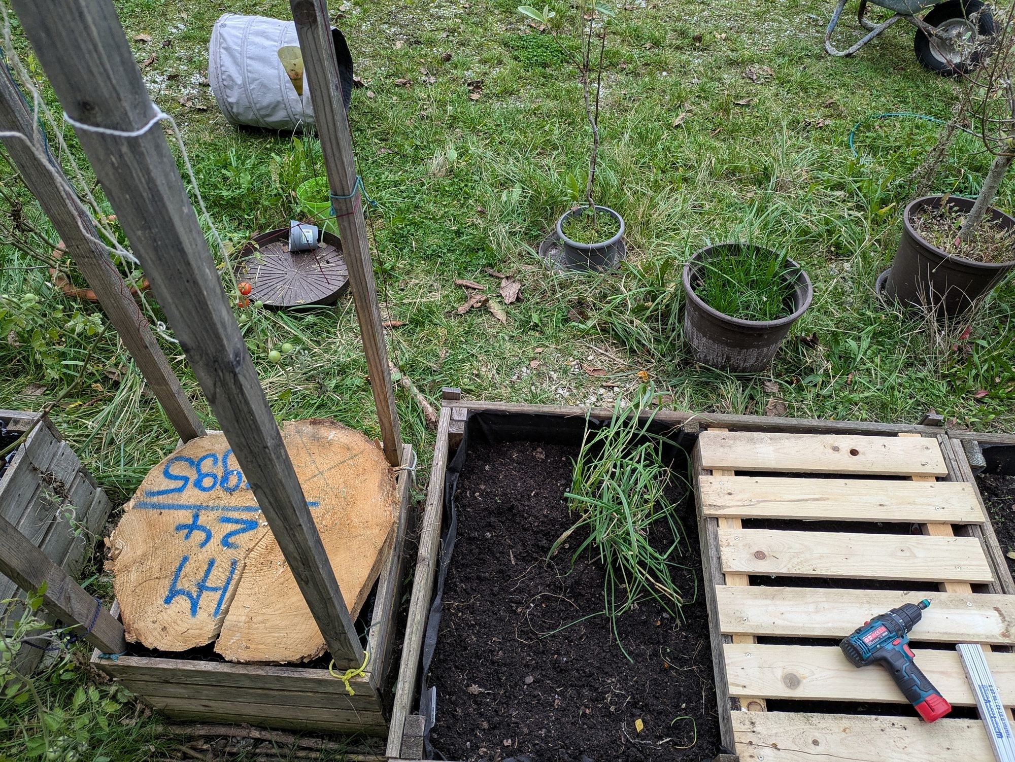 Und weil unsere (kleinsten) Katzen gerne in lockere Erde kacken, habe ich mal angefangen Abdeckungen zu bauen oder drauf zu legen.