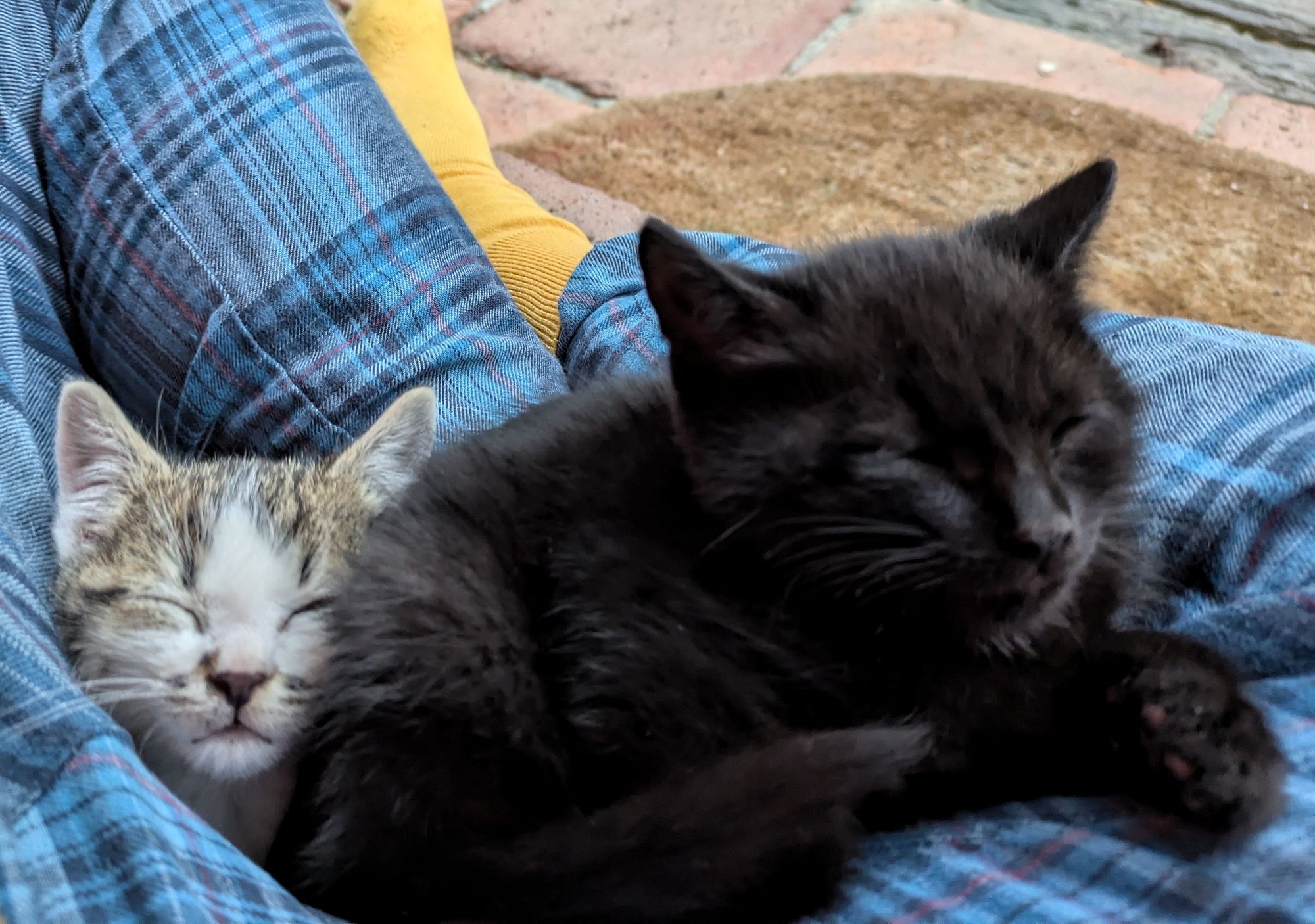 Heute haben sich die zwei "nicht-getigerten" mal wieder auf meine Beine gesetzt.