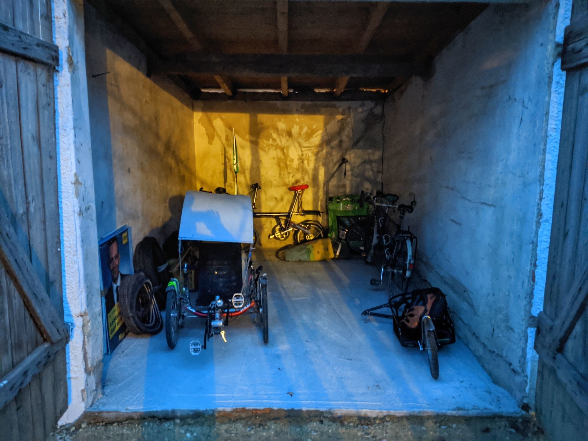 Jetzt brauche ich nicht mehr (fast) täglich das Liegedreirad nach der Nutzung in den Keller tragen.