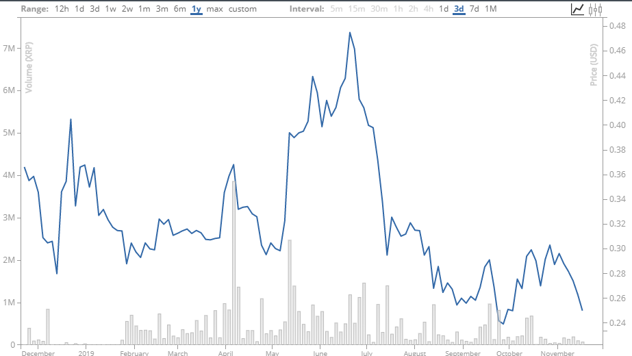 Interestingly, the time in 2019 where the lowest amount of XRP (approx 66,000 XRP) required to make it to the 1% was the last week of June, which was also when XRP reached its highest price for the same time frame:
