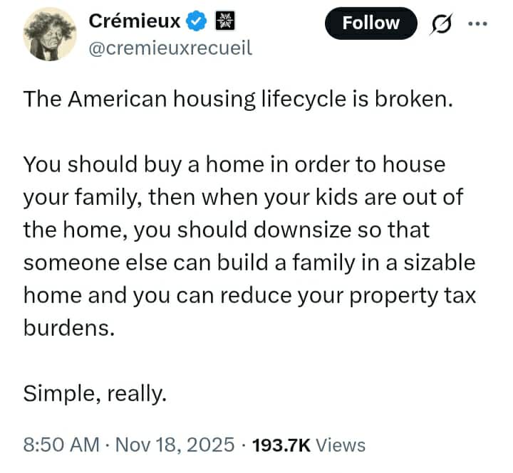 Rationalization and moralization: Homeowners are morally corrupt for not downsizing when they are old. This is totally scientific and economically appropriate. And not at all jealousy.
