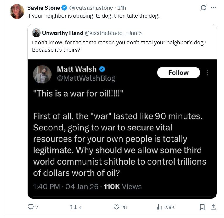 Theists always worry that atheists would just go around murdering and stealing for the sheer fun of it, because there is no bible telling them what to do. And this is why people say the opposite of narcissism is finding answers for yourself. In this case with Matt, the Bible is not yet up to date with modern warfare.