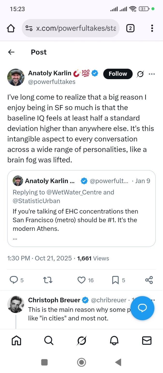 Also I didn’t study research discipline so I didn’t know what “half a standard deviation” of the IQ number was. So I asked ChatGPT and it said 107. SF seems to be below my public high-grade-entrance-exam high school.